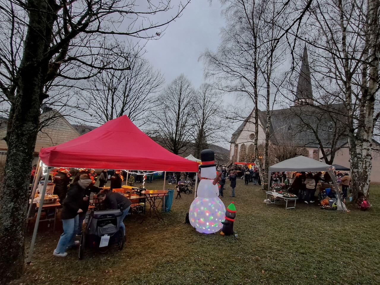 Die Stände verteilen sich im Park (Essens- und Getränkestände der Vereine) und im Innenraum der Kreuzkirche (Kunsthandwerker*innen). Die kleinen und großen Gäste können sich bei Glühwein, Kinderpunsch, Dibbelabbes, Flammkuchen, Erbsensuppe, Würstchen, Crêpes, Stockbrot sowie Kaffee und Kuchen und vielem anderen mehr verwöhnen lassen. Die Kunsthandwerker*innen bieten im Kircheninneren Selbstgemachtes von Strick- und Häkelwaren über Schmuck und Grußkarten zu Honigwaren und selbst Eingekochtem und hochwertigen Fotografien an.
