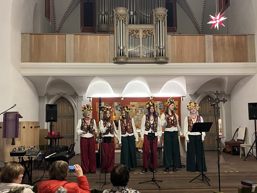 In diesem Jahr war das begleitende musikalische Programm besonders umfangreich und abwechslungsreich: sieben Gruppen, von Bläserklassen der Gemeinschaftsschule Dudweiler über den Posaunenchor, dem Männerchor und dem Cäcilienchor der kath. Kirchengemeinde sorgten für vorweihnachtliche Stimmung. Mit dem Mitsingkonzert des Ensemble Cantabile schloss Oberbürgermeister Uwe Conradt seinen Rundgang über den Markt besinnlich ab. Der musikalische Höhepunkt war mit dem eindrücklichen Konzertbetrag der Gesangsgruppe „Blumen der Ukraine“ erreicht.