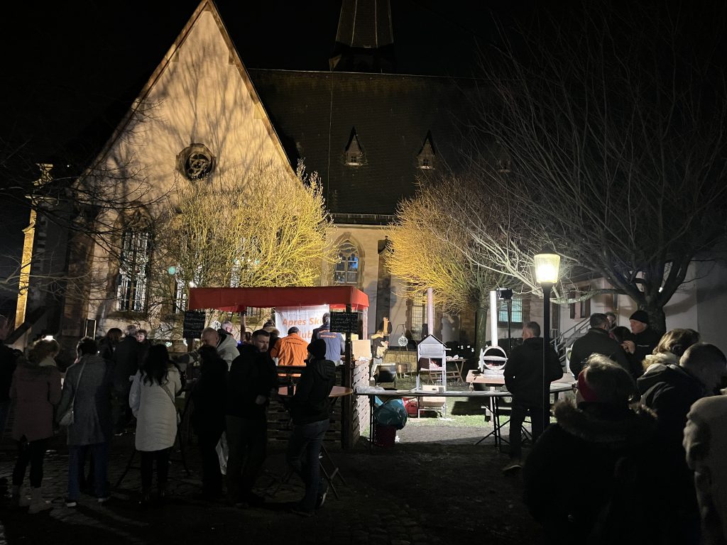 Der Festplatz war den ganzen Nachmittag über gut besucht. Der 47. Kaltnaggischer Weihnachtsmarkt bot nicht nur leckere Speisen und schöne Dinge zum Anfassen, sondern war auch eine wunderbare Gelegenheit, sich mit Freunden, Nachbarn und sogar Besuchern aus der Ferne zu treffen und in vorweihnachtliche Stimmung zu kommen. Man konnte sich gemütlich unterhalten und die heimelige Atmosphäre des Parks mit der beleuchteten Kreuzkirche im Hintergrund auf sich wirken lassen. Der OIV Herrensohr, der den Weihnachtsmarkt organisierte, und die evangelische Kirchengemeinde, die Gastgeberin war, waren mit dem Verlauf des Weihnachtsmarkts sehr zufrieden.
